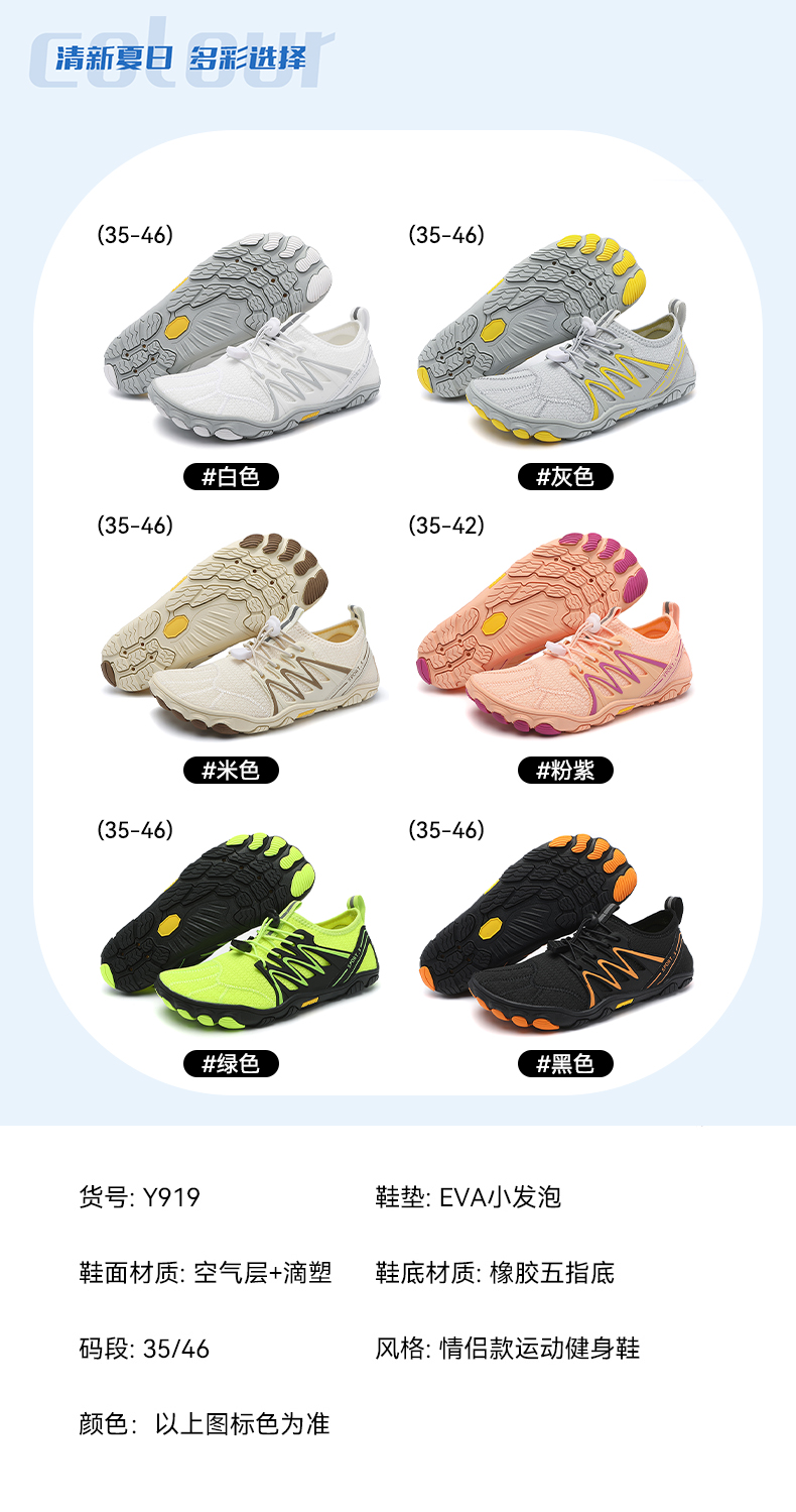 | 商品名称:悦足Y919 新款五指溯溪鞋游泳多功能瑜伽鞋35-46 |