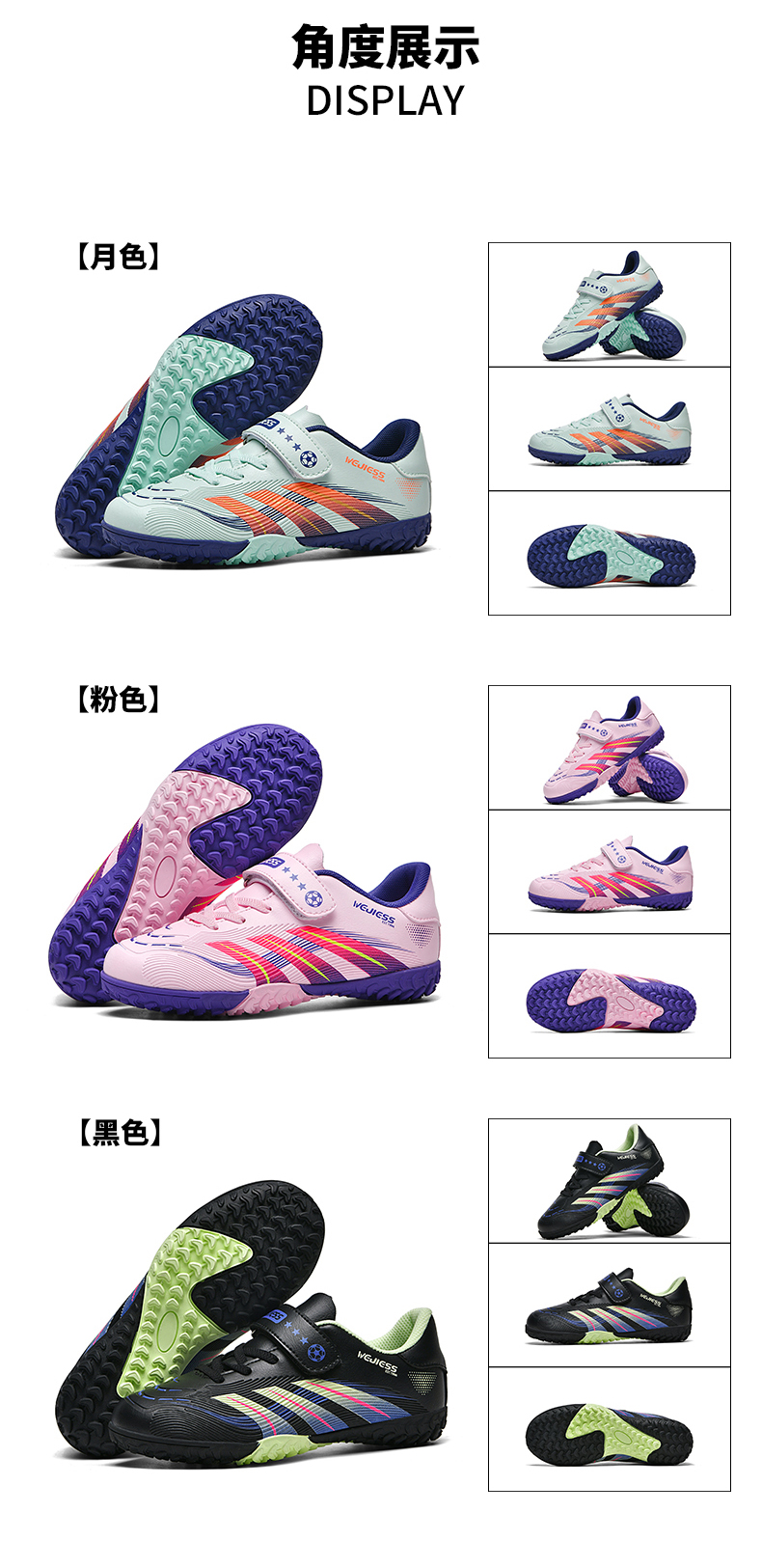 | 商品名称:悦足2611 新款碎钉防滑耐磨魔术贴足球鞋30-38 |