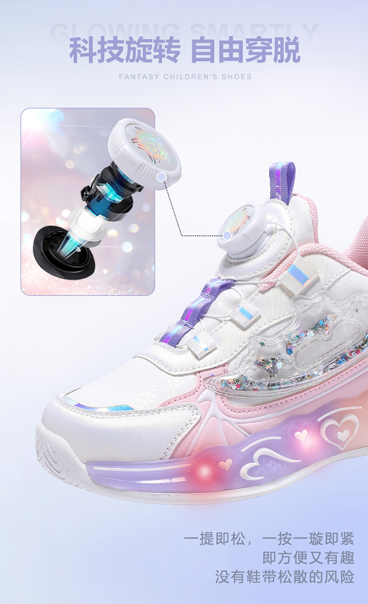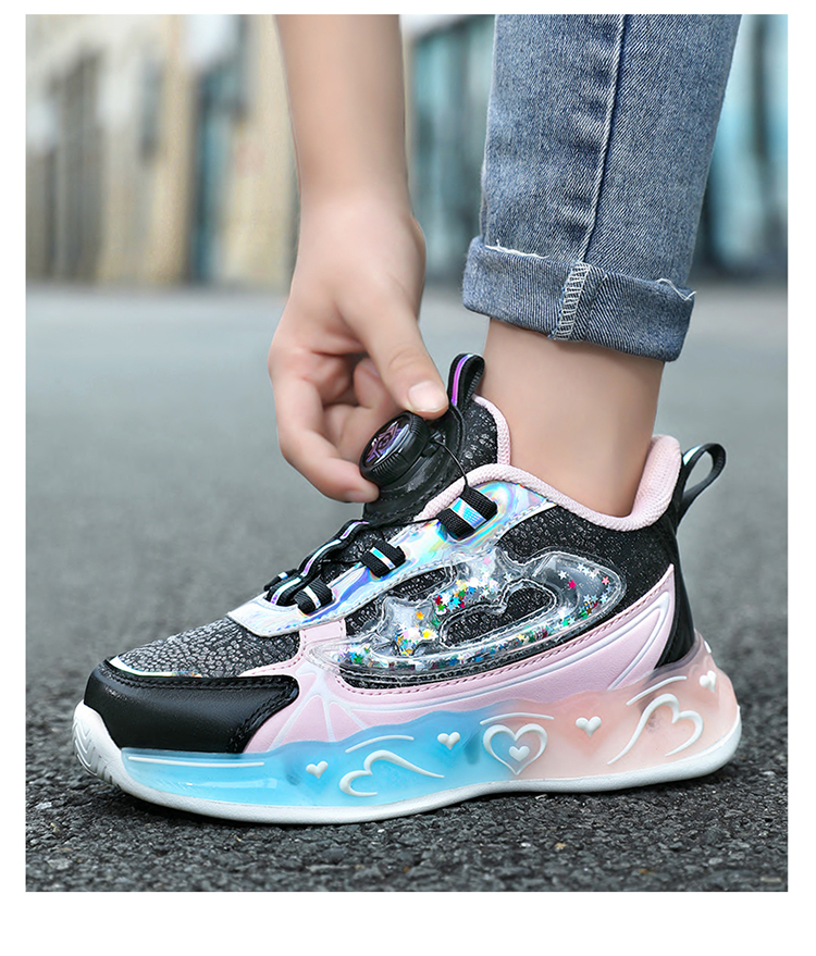 冬季新款儿童亮灯纽扣运动鞋女孩学生防滑软底老爹潮鞋