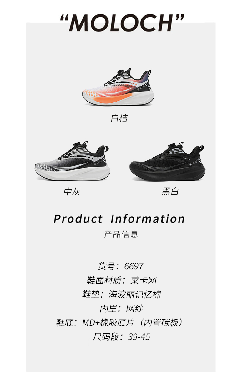 | 商品名称:工厂直销6697体能测试碳板超轻春夏季飞织透气网布跨境P75 |