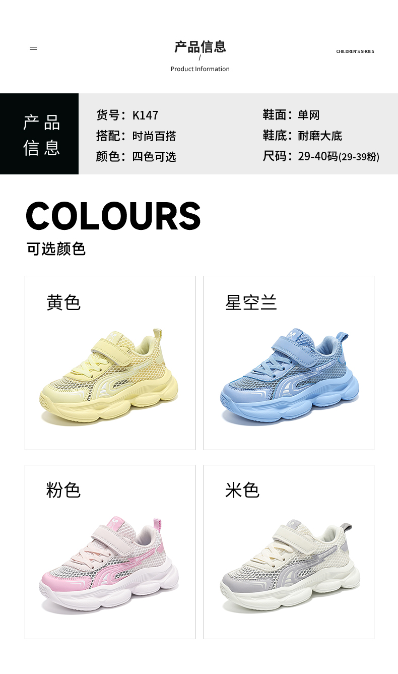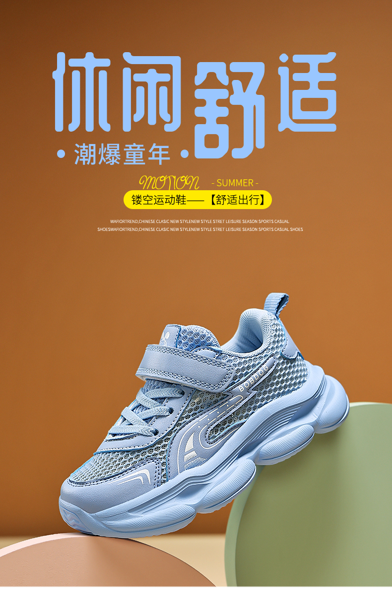 | 商品名称:巴布豆K147 新款单网透气儿童休闲鞋运动鞋29-39 |