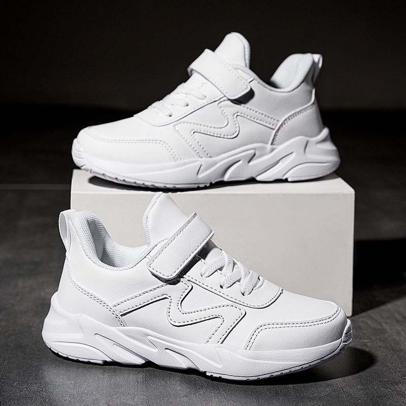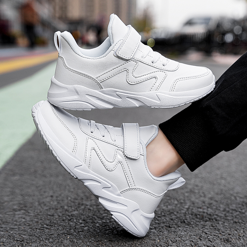 运动鞋(跨境)校园小白鞋皮面防水轻便防滑软底跑步鞋