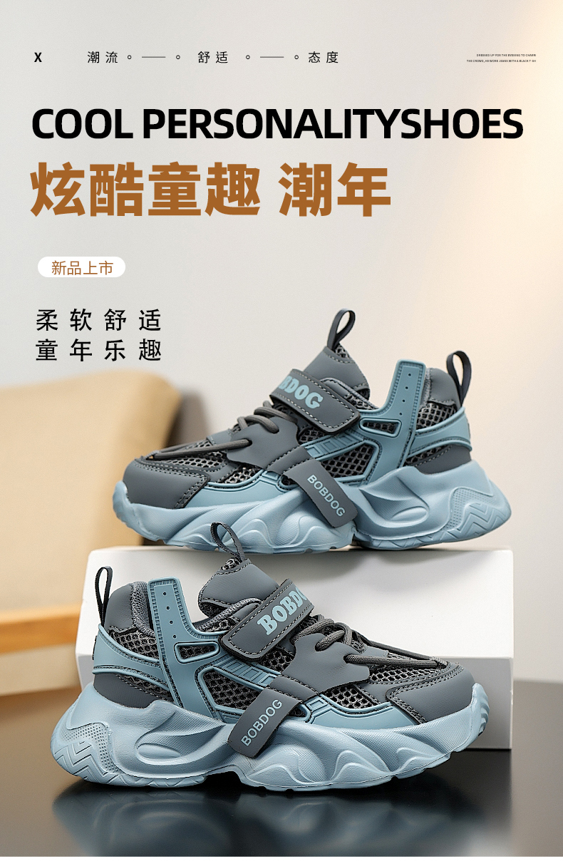 巴布豆儿童单网双网镂空运动鞋女童透气休闲鞋