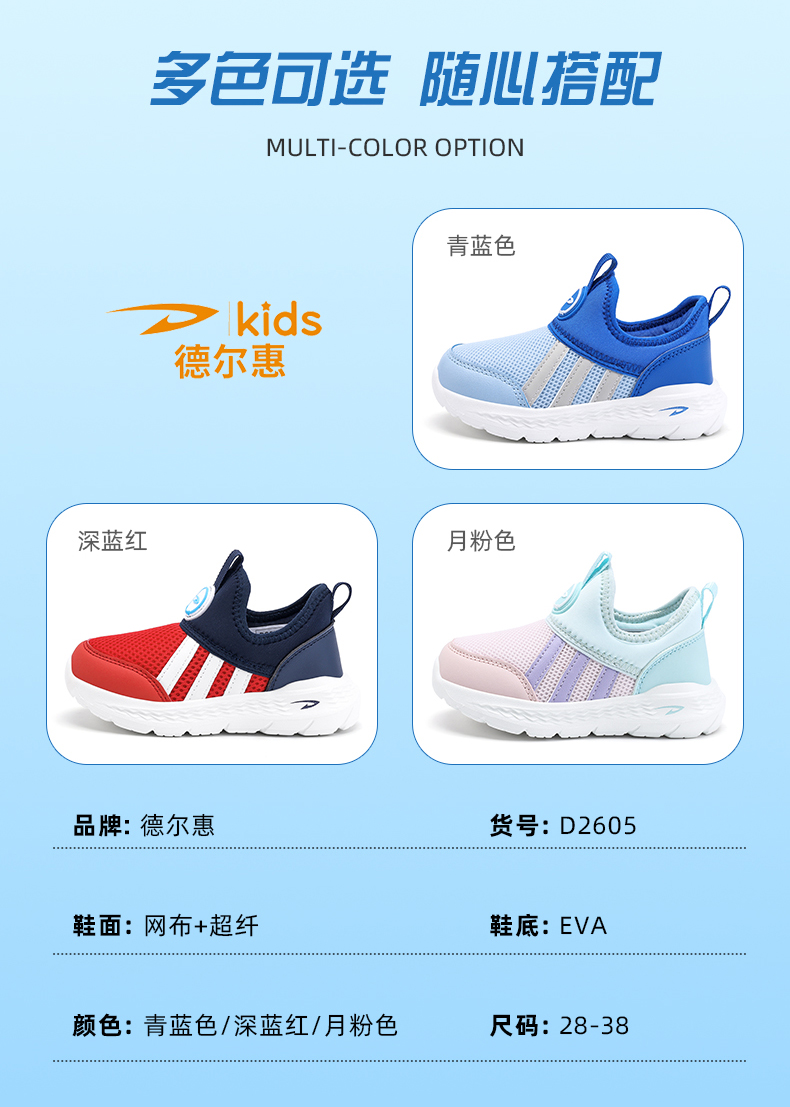 | 商品名称:【了然鞋业】德尔惠儿童春新款时尚透气一脚蹬运动鞋28-38 |