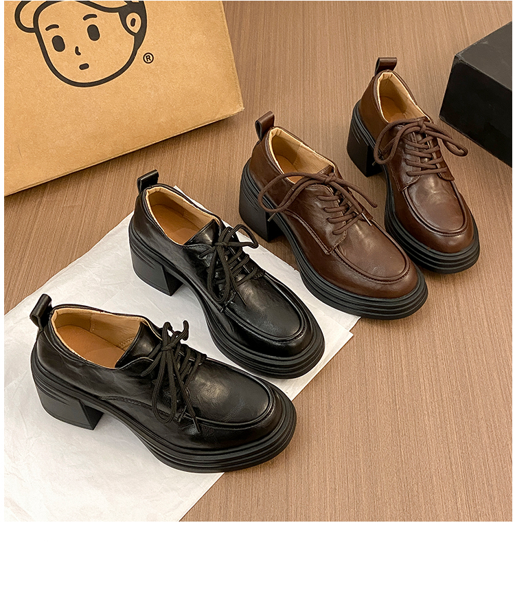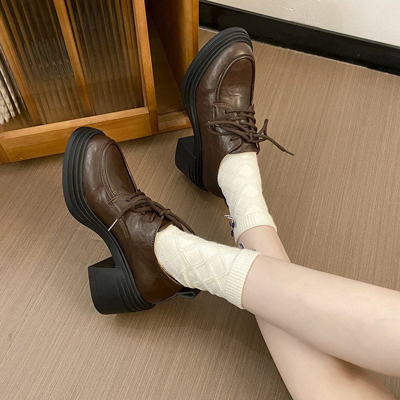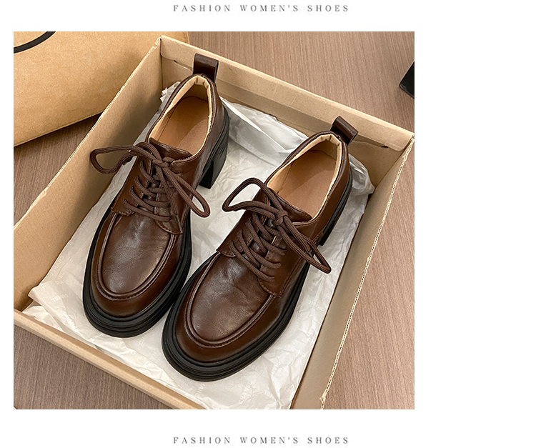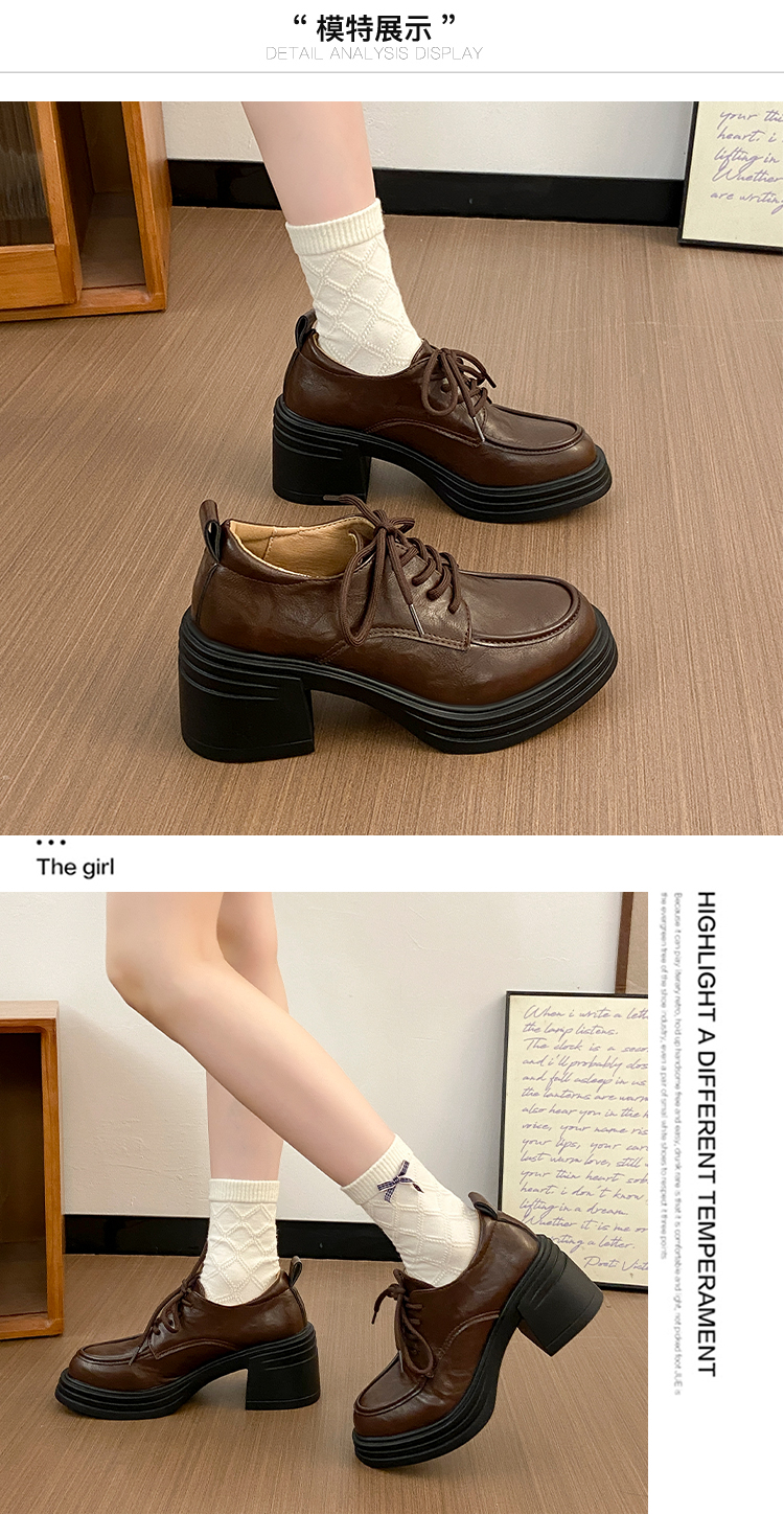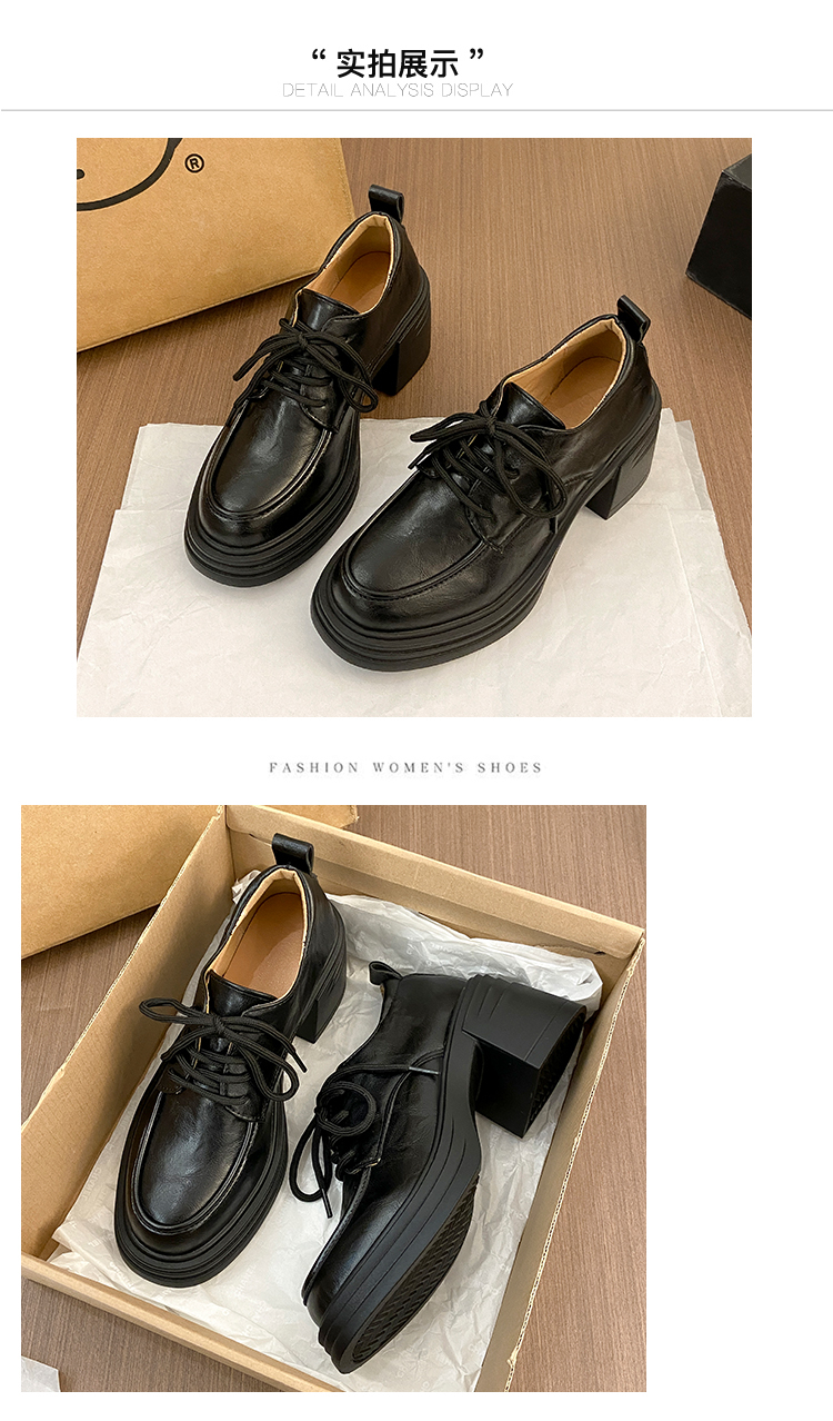 | 商品名称:复古圆头厚底粗跟系带单鞋女2025新款春秋英伦风小皮鞋 |