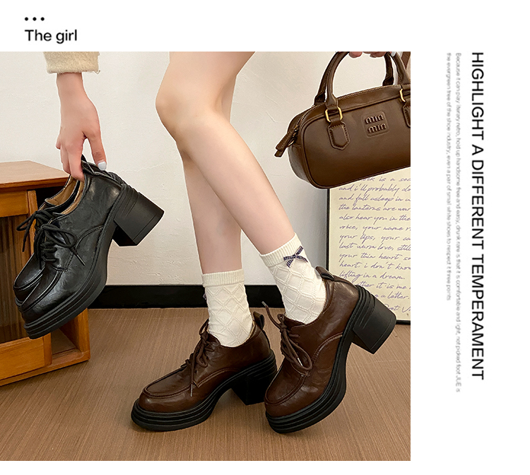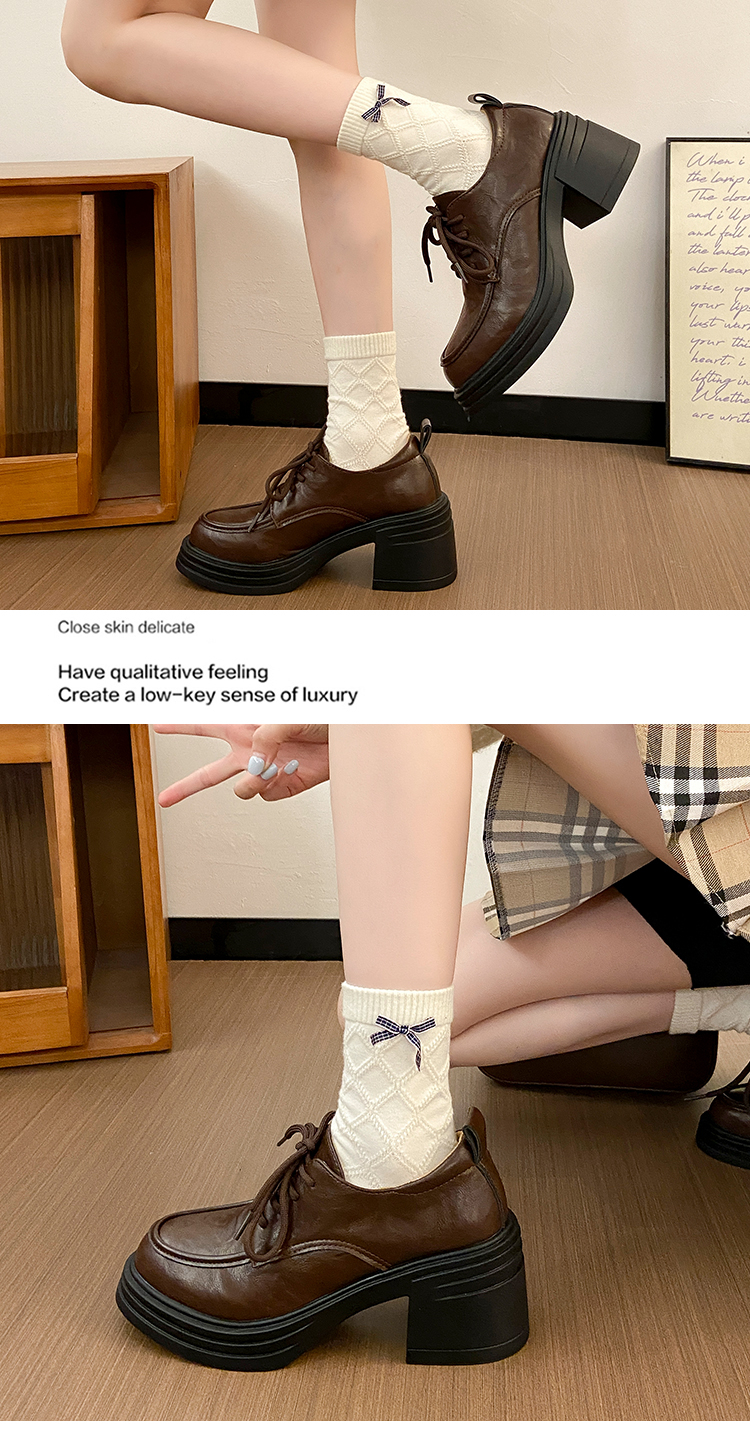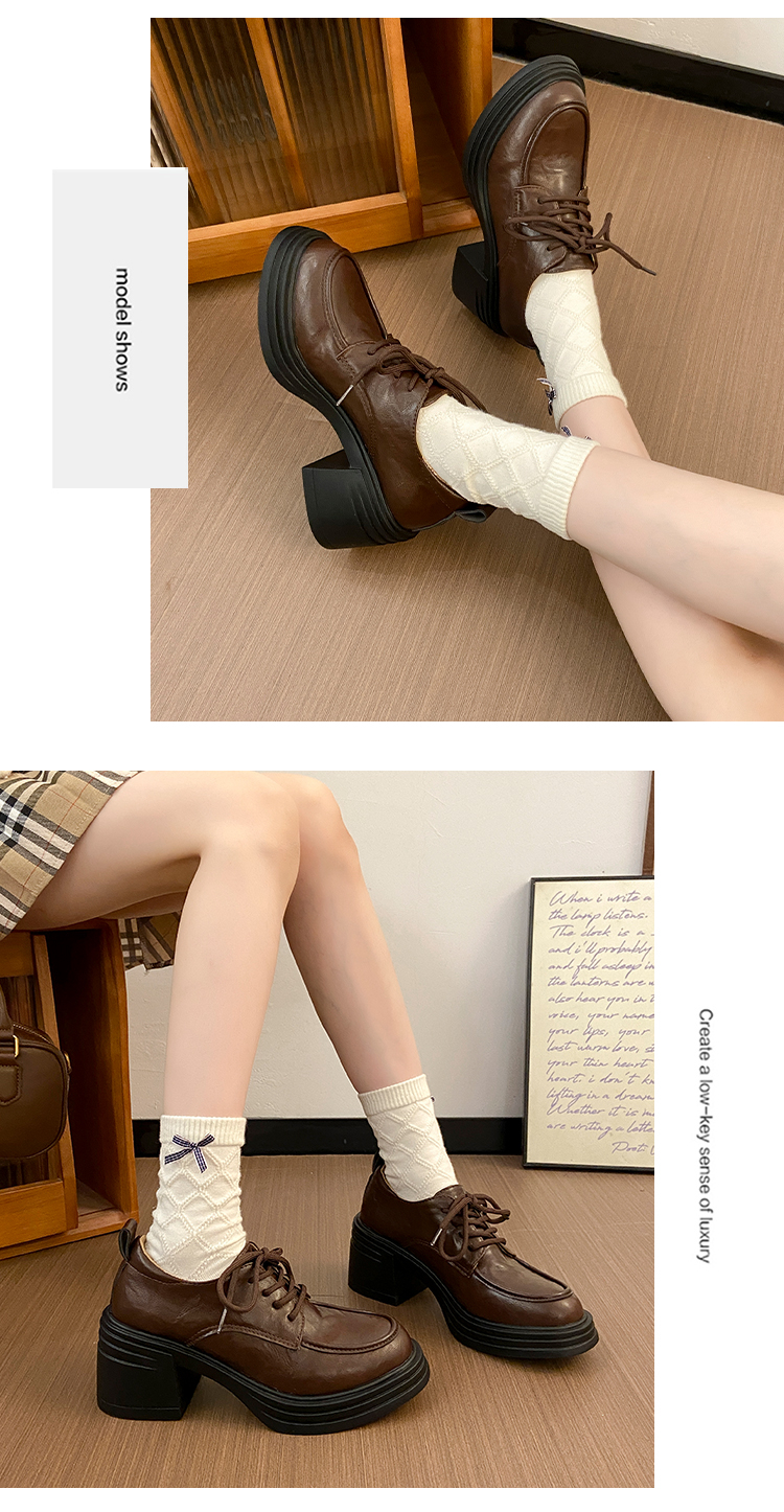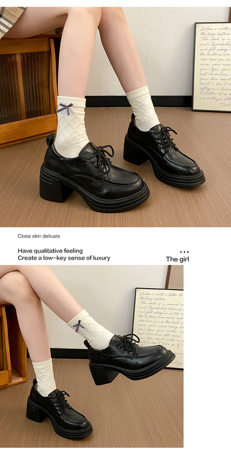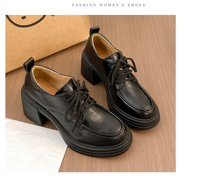 | 商品名称:复古圆头厚底粗跟系带单鞋女2025新款春秋英伦风小皮鞋 |