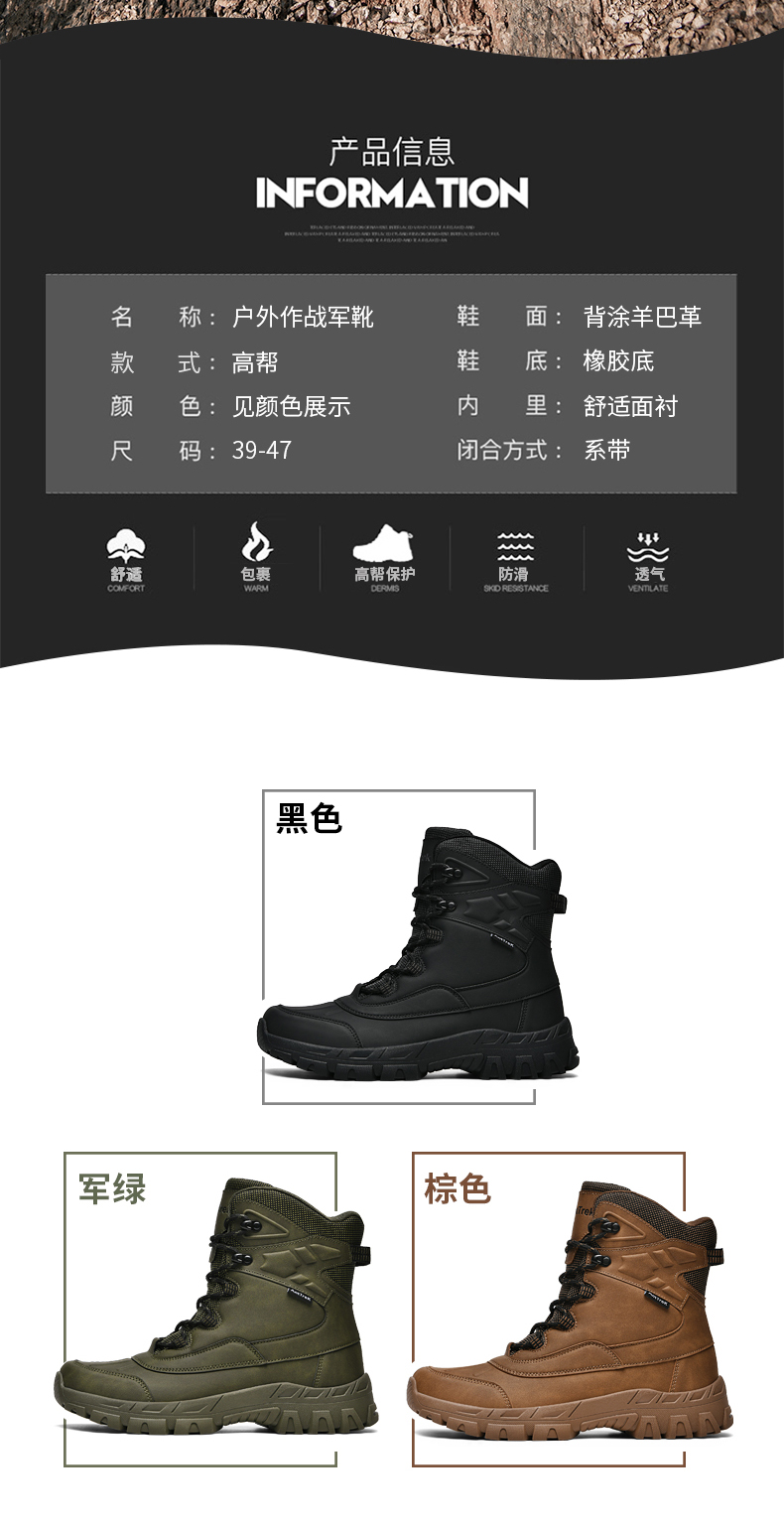 | 商品名称:悦足6011 跨境大码户外野练战地训练军靴39-47 |