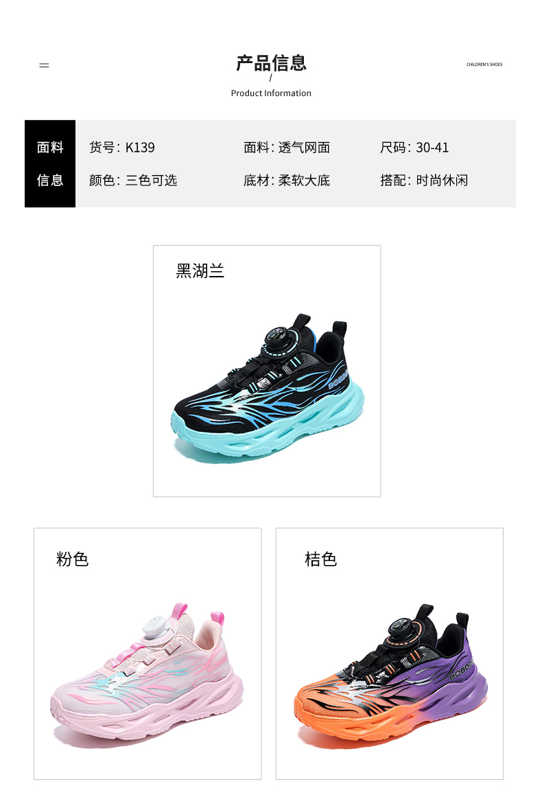 | 商品名称:巴布豆K139 春季新款双网男女儿童运动鞋30-40 |