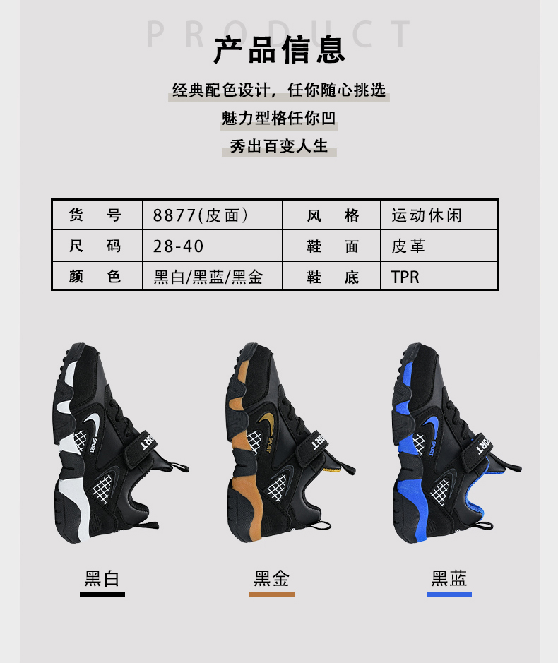 | 商品名称:悦足8879 经典爆款皮面儿童运动休闲鞋28-40 |
