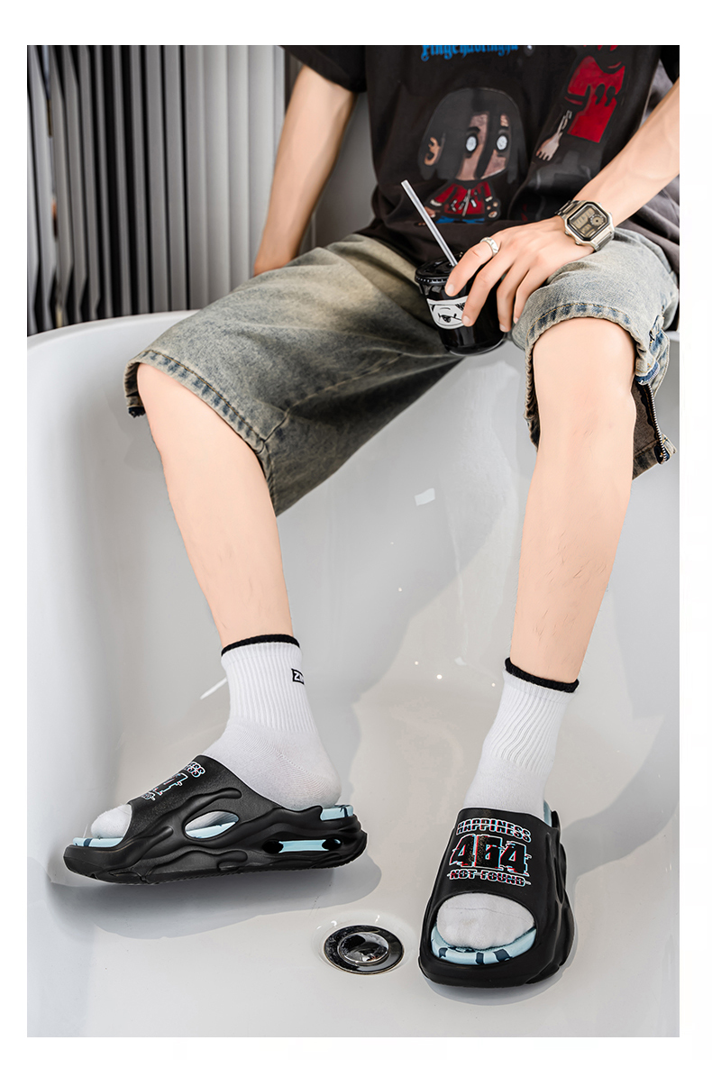| 商品名称:工厂直销A2525-1夏季日常休闲厚底踩屎感拖鞋跨境情侣大码 |
