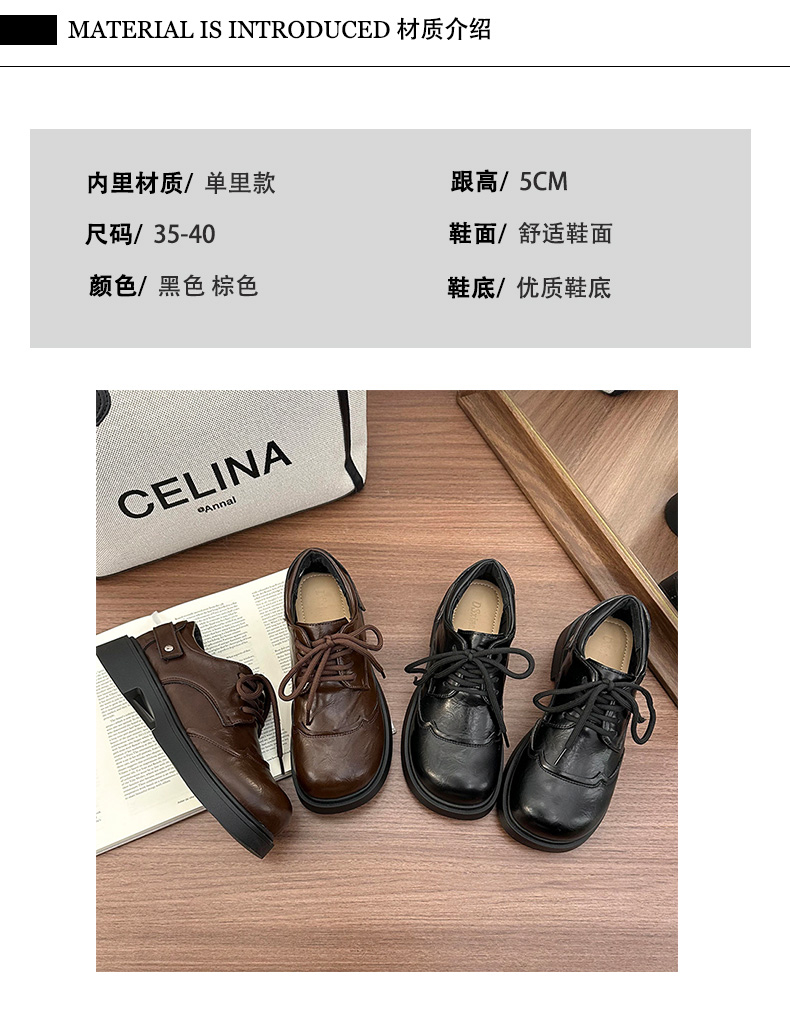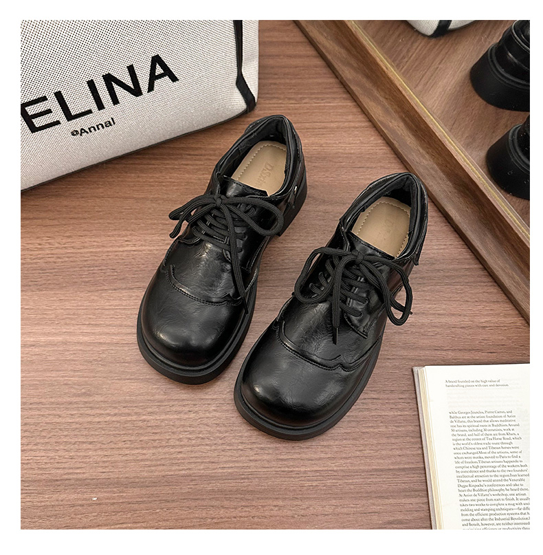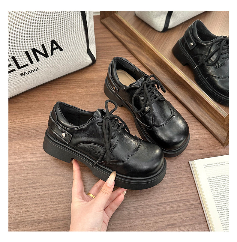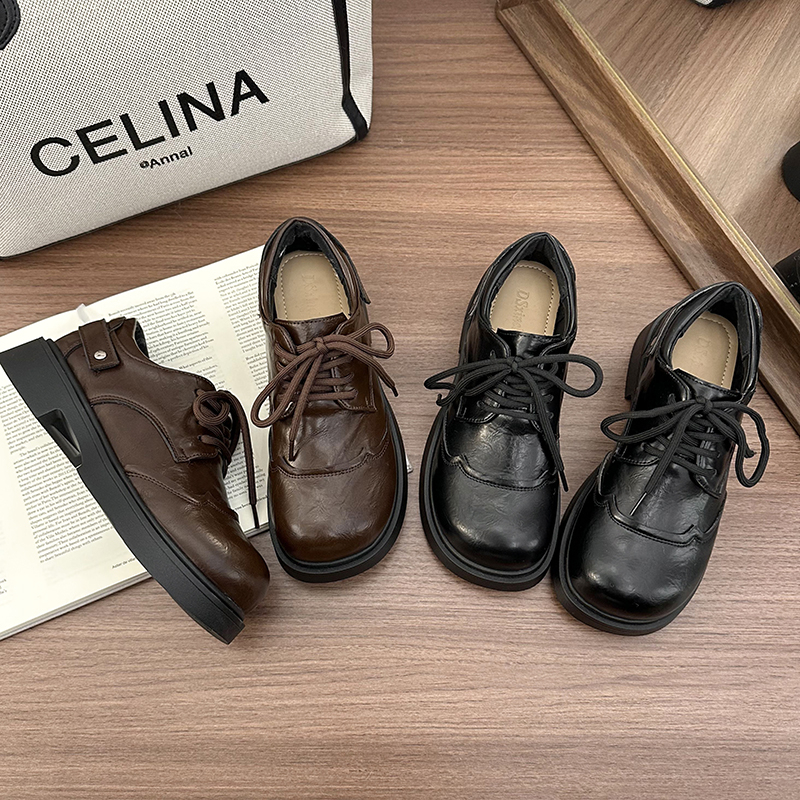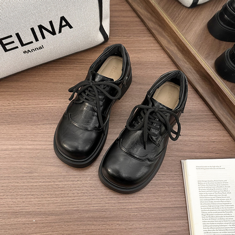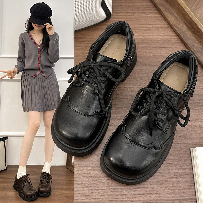| 商品名称:女王范复古黑色大头粗跟小皮鞋女2026新款春秋配裙子百搭乐福 |