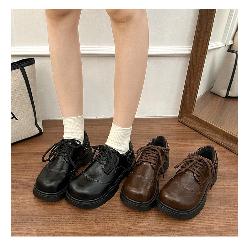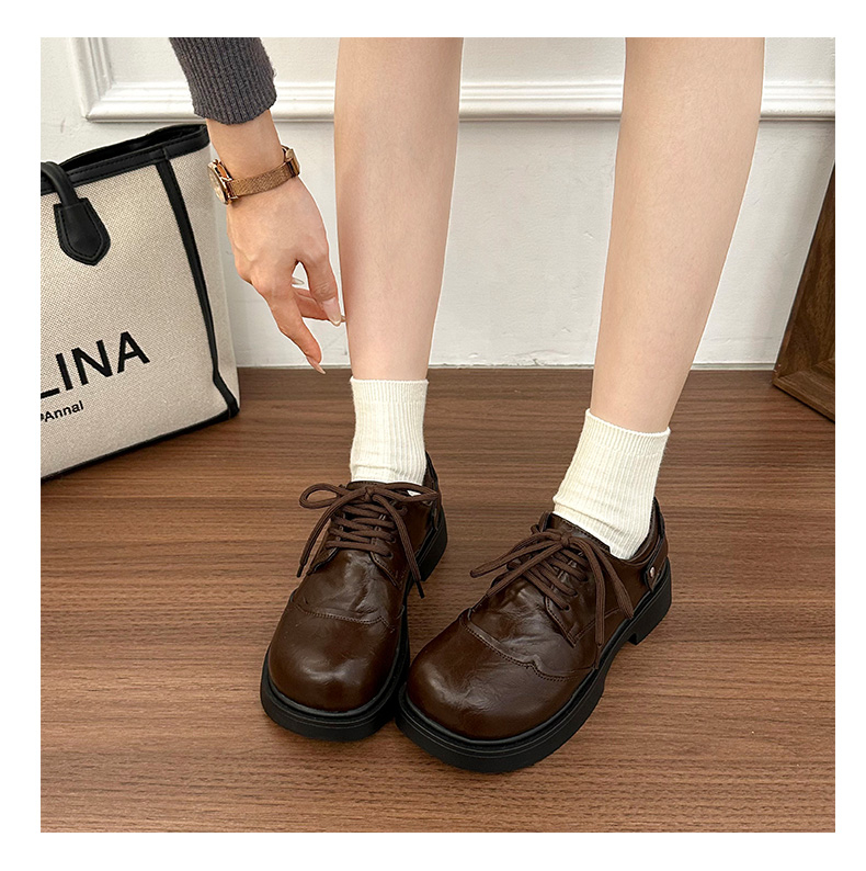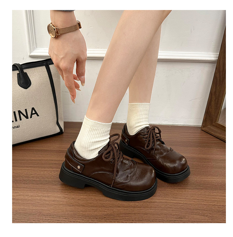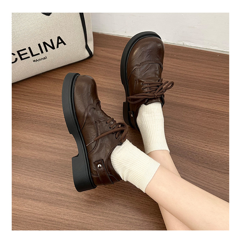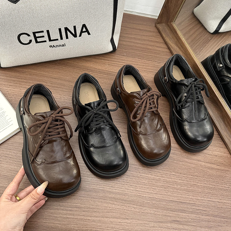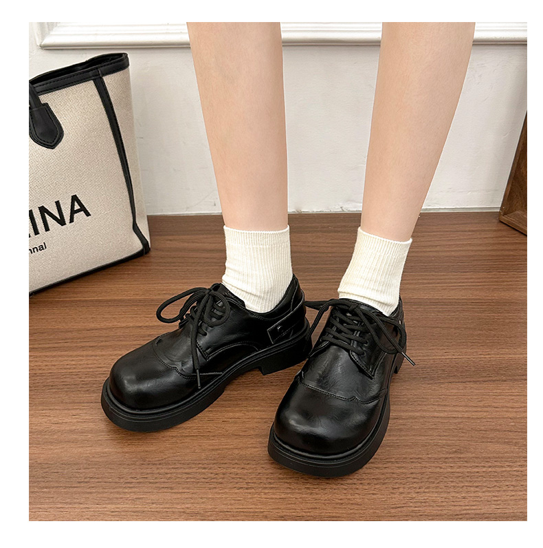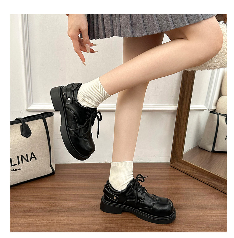 | 商品名称:女王范复古黑色大头粗跟小皮鞋女2026新款春秋配裙子百搭乐福 |