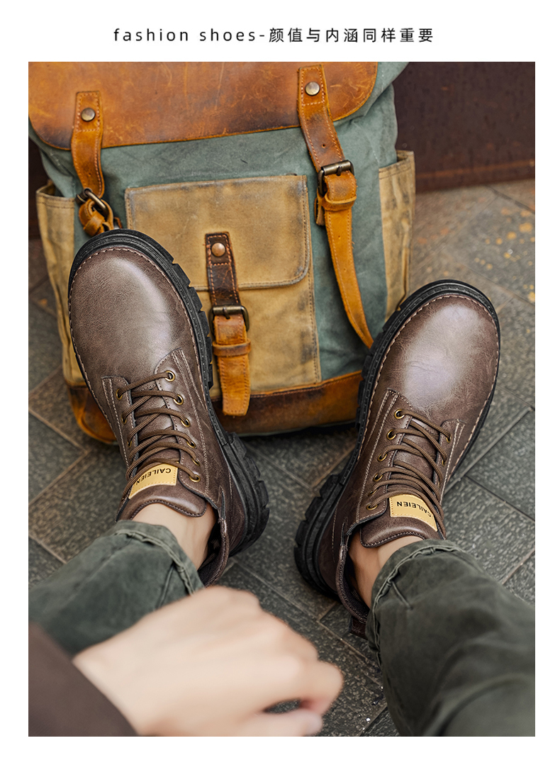 | 商品名称:高帮马丁靴男士英伦复古工装鞋厚底防滑户外休闲鞋 |