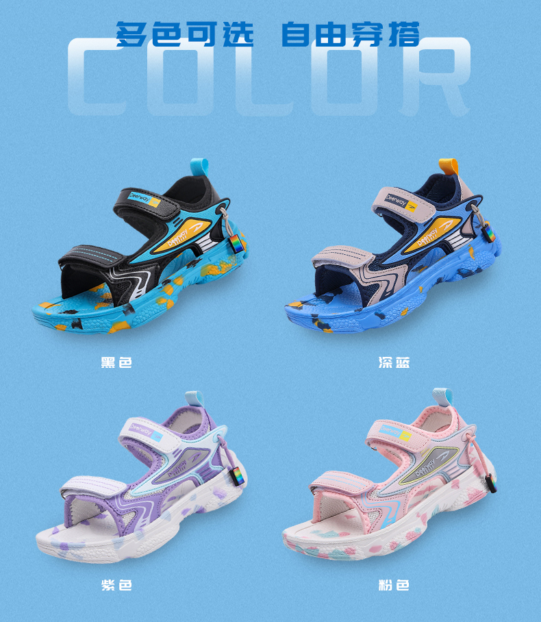 德尔惠D3188 新款露趾儿童运动凉鞋27-40