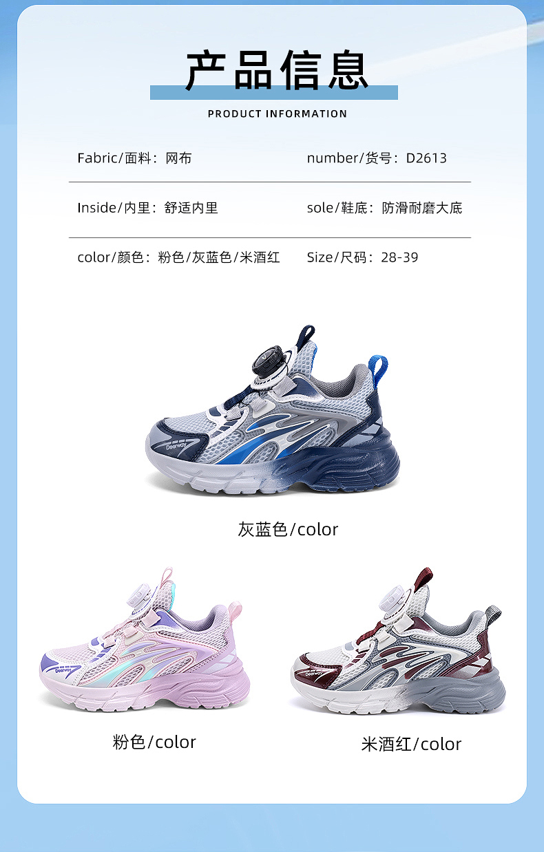 | 商品名称:德尔惠D2613 夏季新款双网儿童运动鞋28-39 |