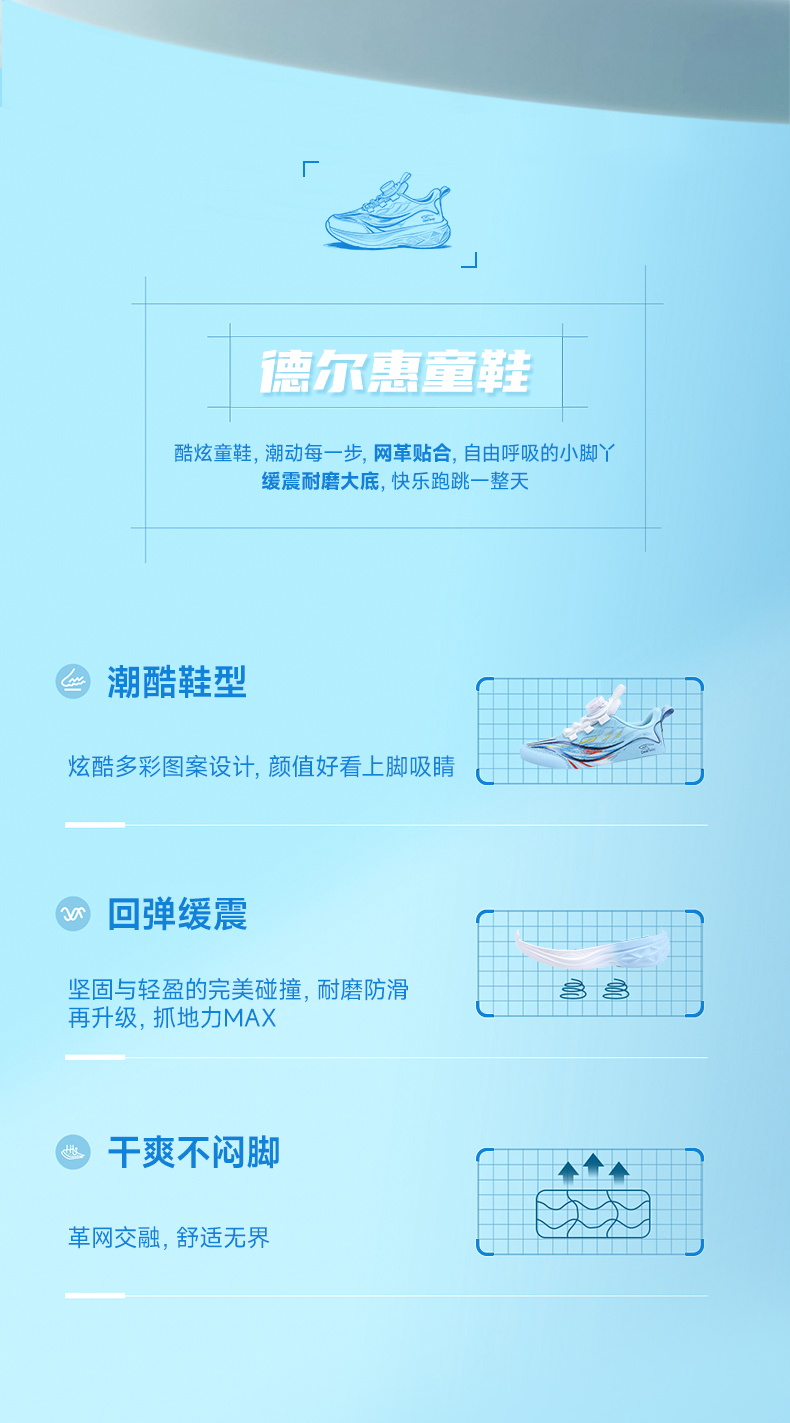 德尔惠D2608 夏季新款双网儿童运动鞋28-39