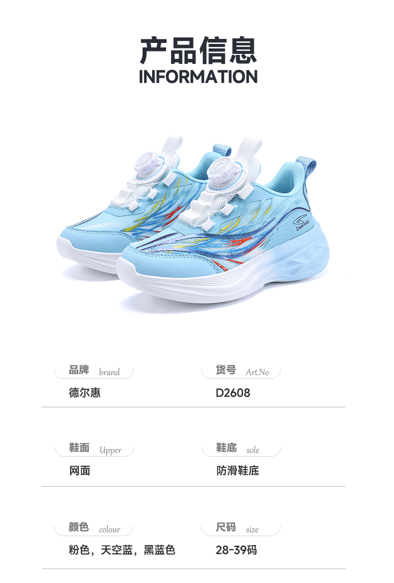 | 商品名称:德尔惠D2608 夏季新款双网儿童运动鞋28-39 |
