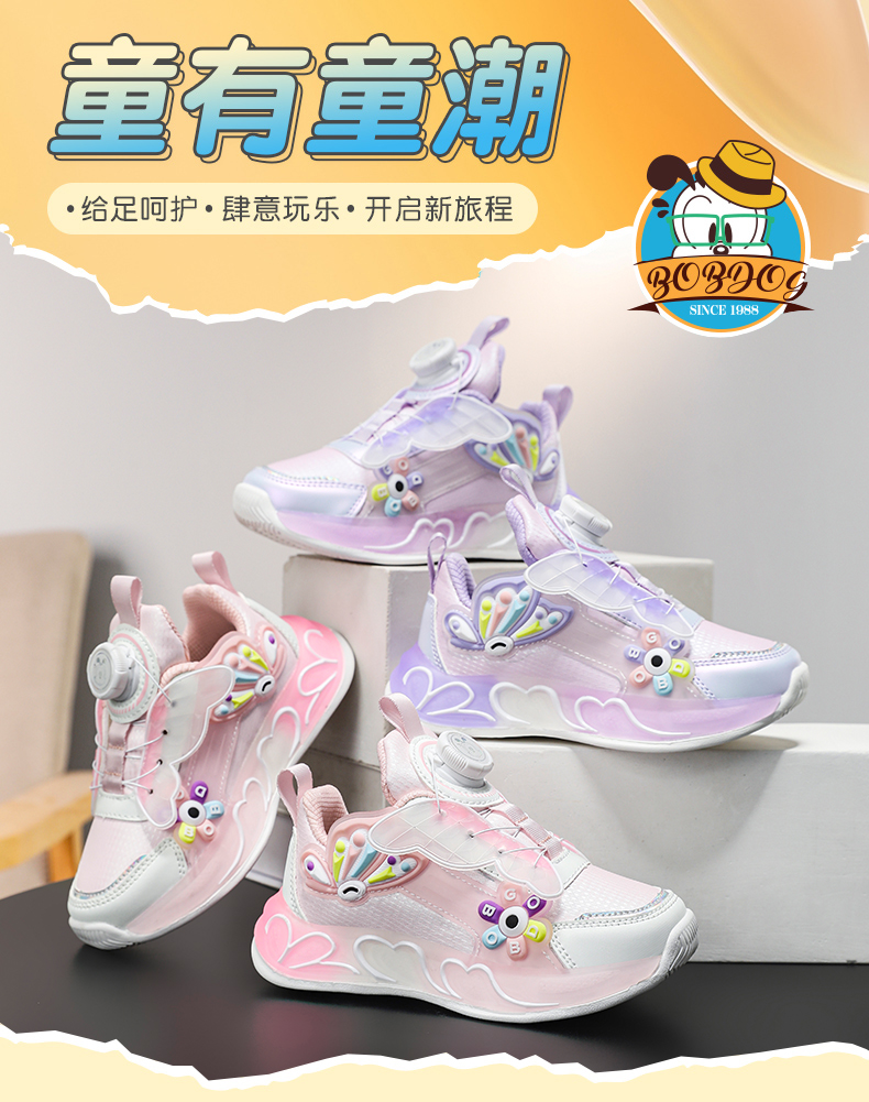 【了然鞋业】巴布豆新款女童春季舒适皮面休闲运动鞋27-37
