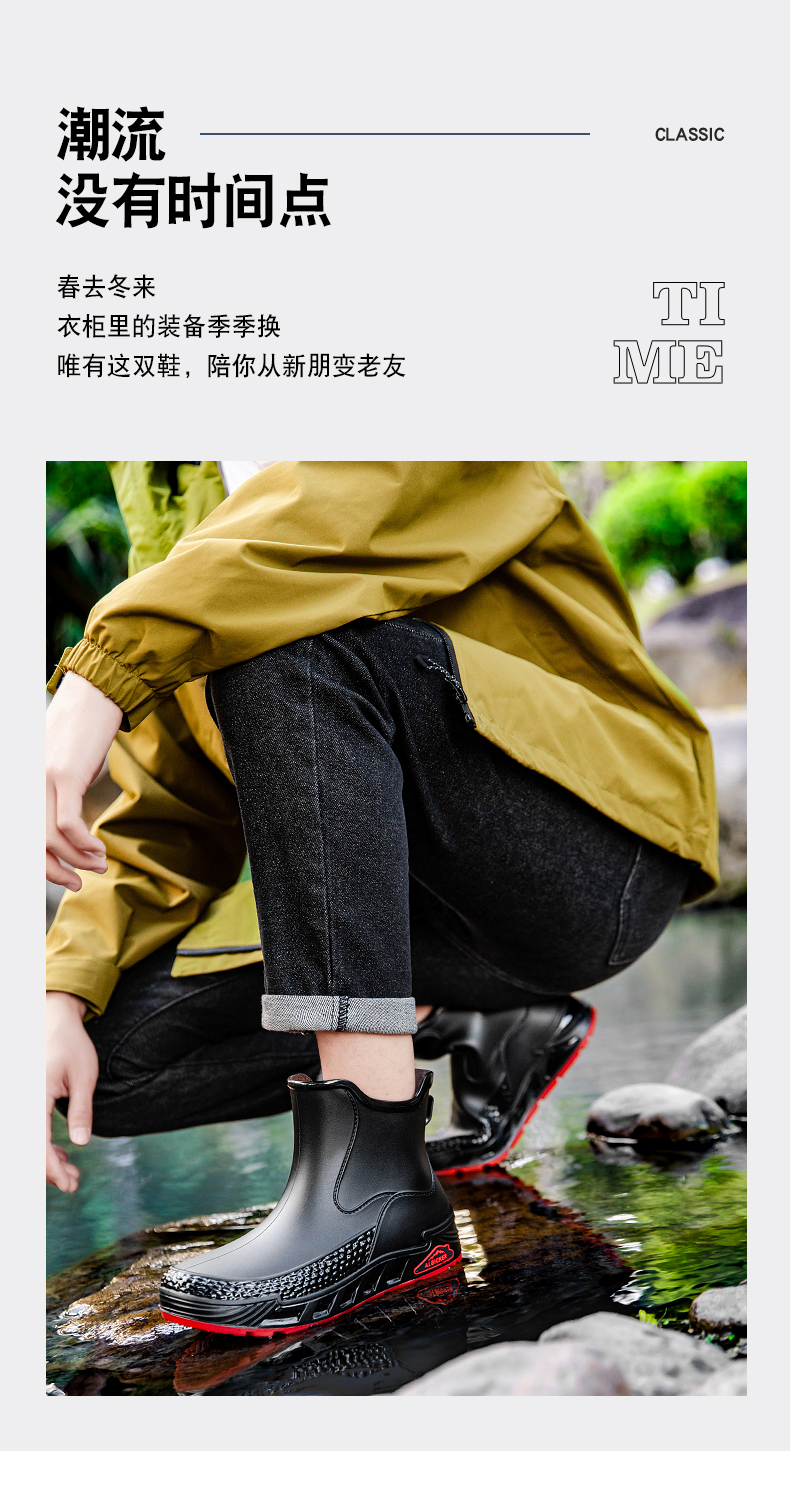 工厂直销YX669跨境特大码时尚雨鞋厨房钓鱼鞋情侣款P28