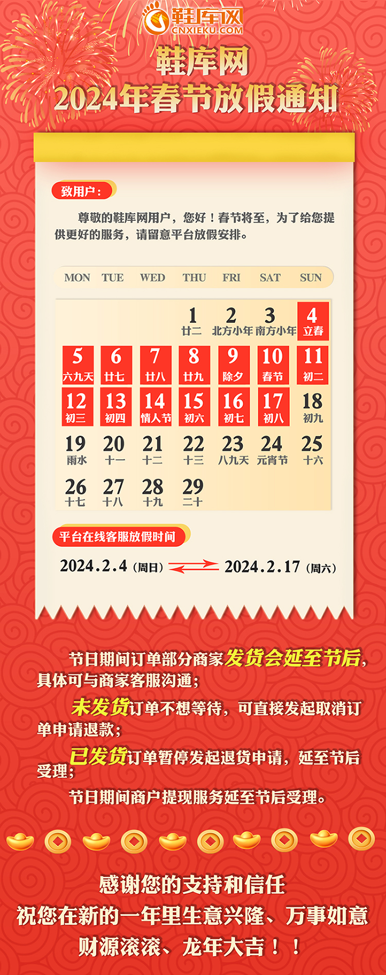 鞋库网2024年春节放假通知