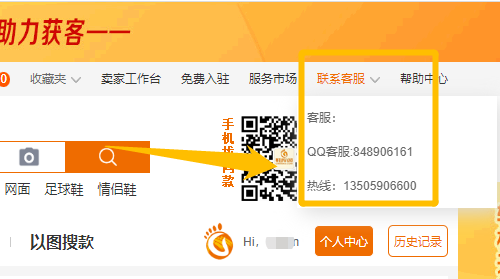 打开鞋库网首页http://www.cnxieku.com/,在网页右上角,有个“联系客服”链接,此处QQ和电话为平台客服联系方式;